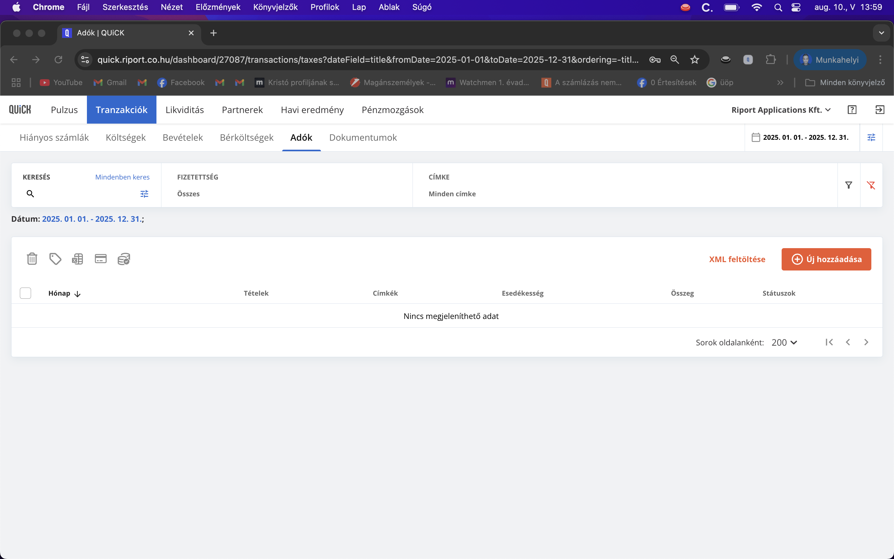 QUiCK ➡️ Tranzakciók ➡️ Adók